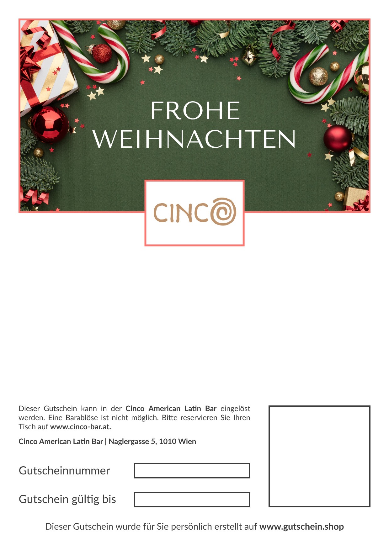 Inspiriert von den fünf Elementen, ist das CINCO ein wahres Hideaway für Cocktailliebhaber. Leicht versteckt, in der Naglergasse trifft südamerikanische Lebensfreude auf große Cocktailkultur. Barchef Nick Diehl-Thiele beeindruckt mit Kreationen, die die fünf Elemente ins Glas und pure Trinkfreude an den Gast bringen. Stilvoll und gemütlich, perfekt für einen Kurzurlaub vom Alltag, der sich gerne um einen zweiten oder dritten Drink verlängern lässt.