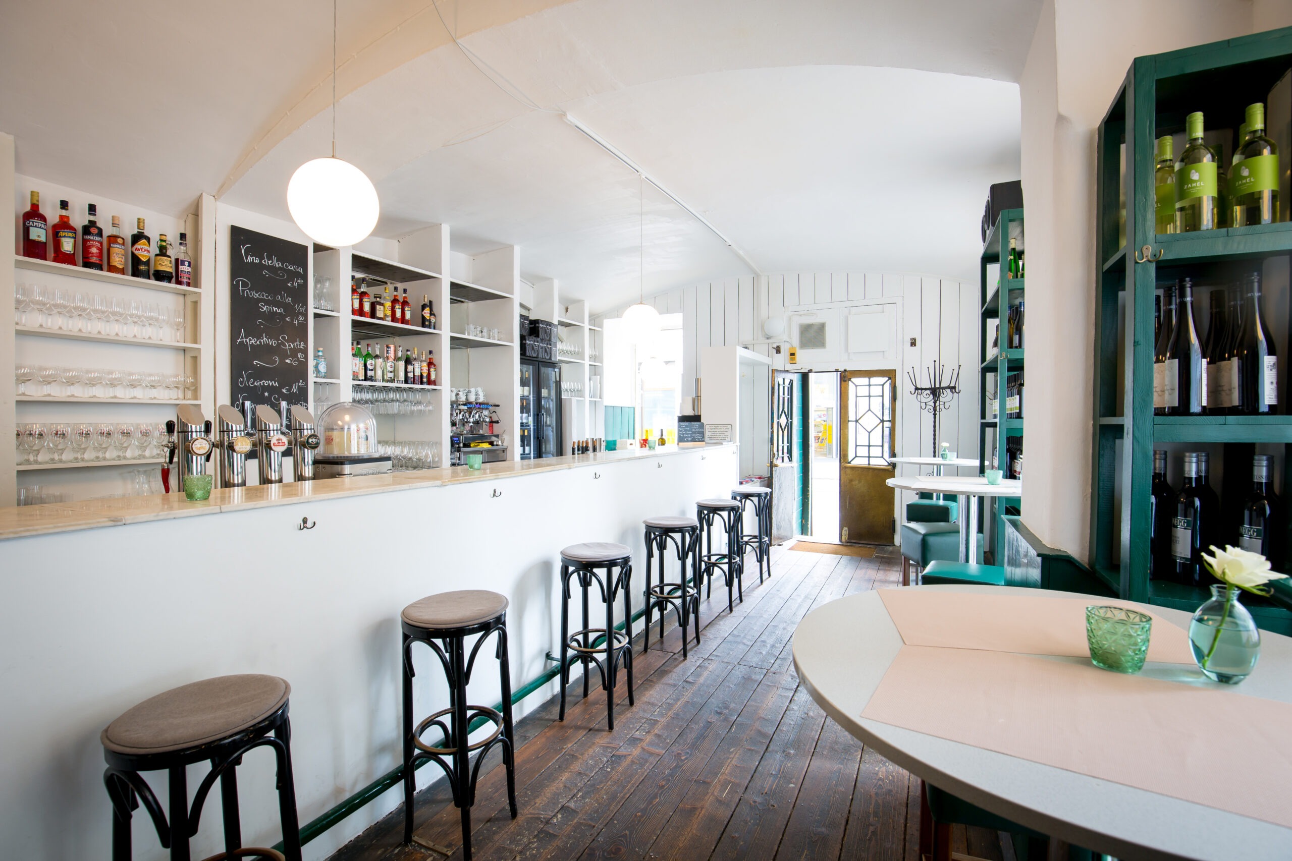 Die Weißweine – eine feine Selektion aus Österreich, die Rotweine aus unterschiedlichsten italienischen Regionen, unbekannt und einzigartig in Wien. Spumante vom Fass, Kaffee aus Triest, Prosciutto aus Parma – und vieles mehr!